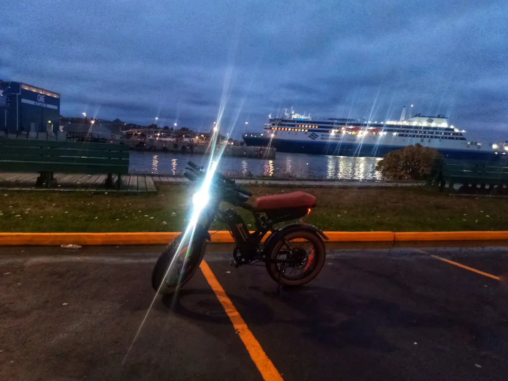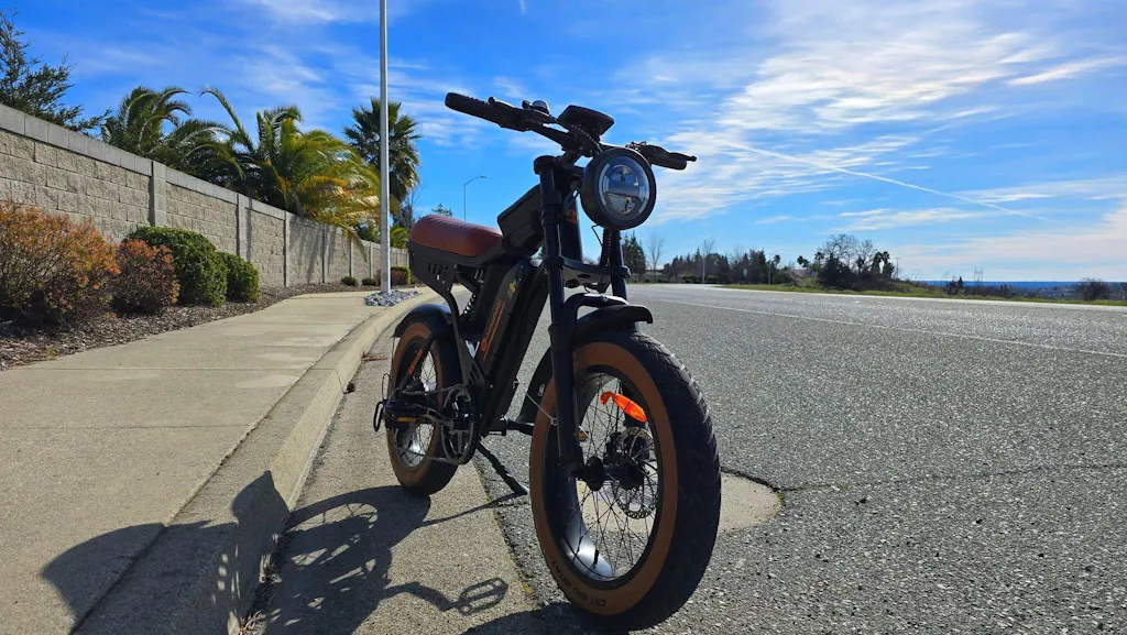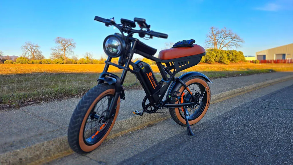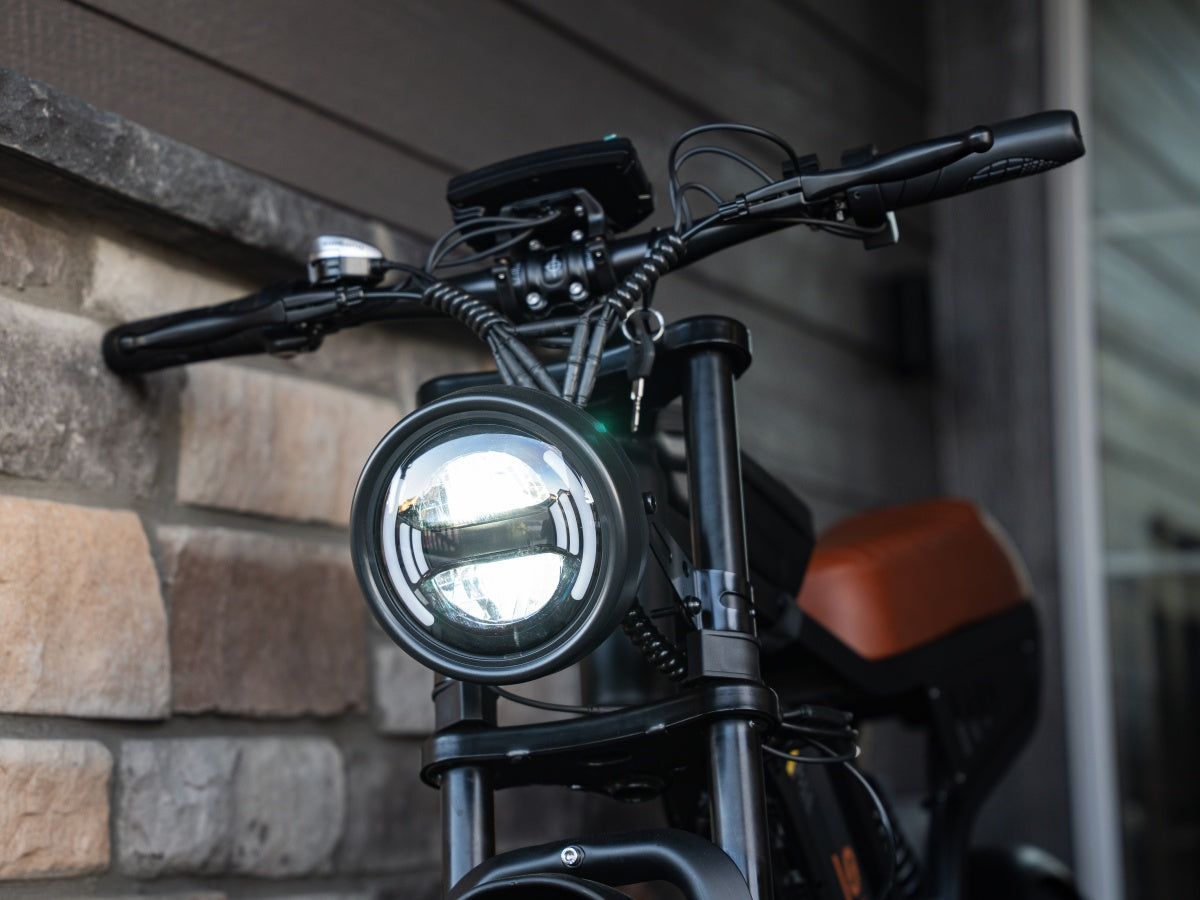 It comes with retro headlights and turn signals, ensuring clear visibility and safety during riding.