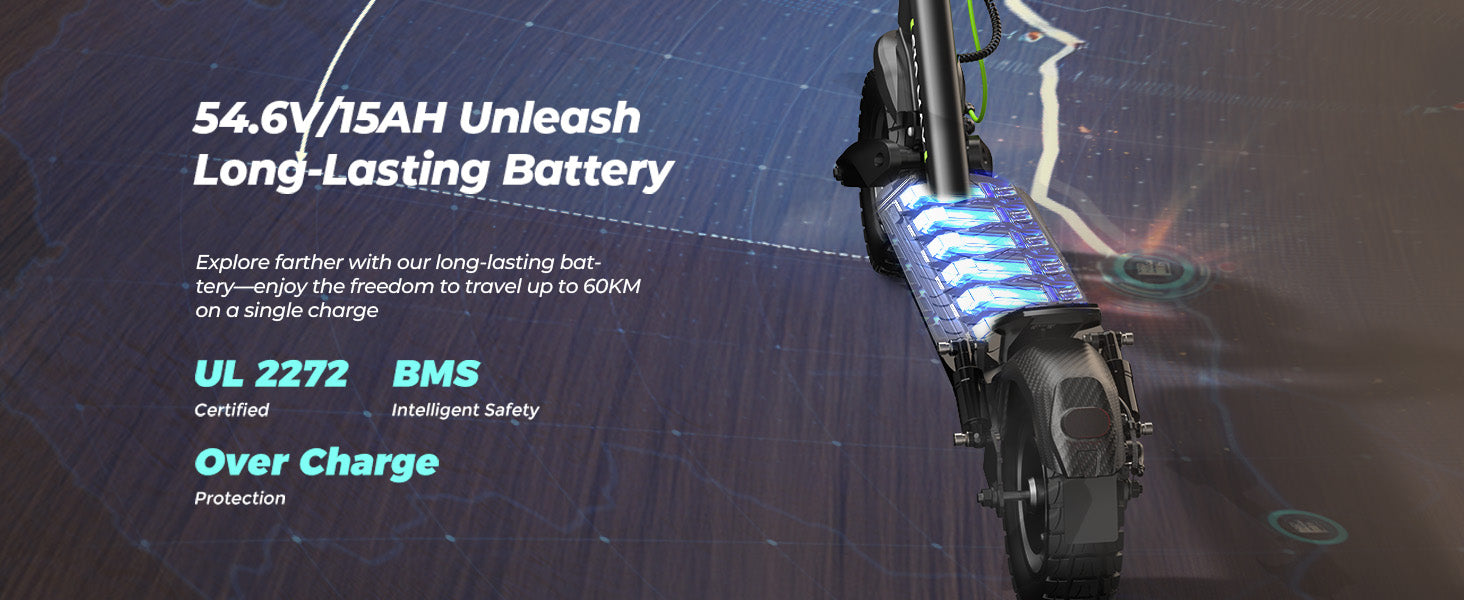 ✅54.6V 15Ah Battery, 60 KM Max Range, 7–8H Charging Time
