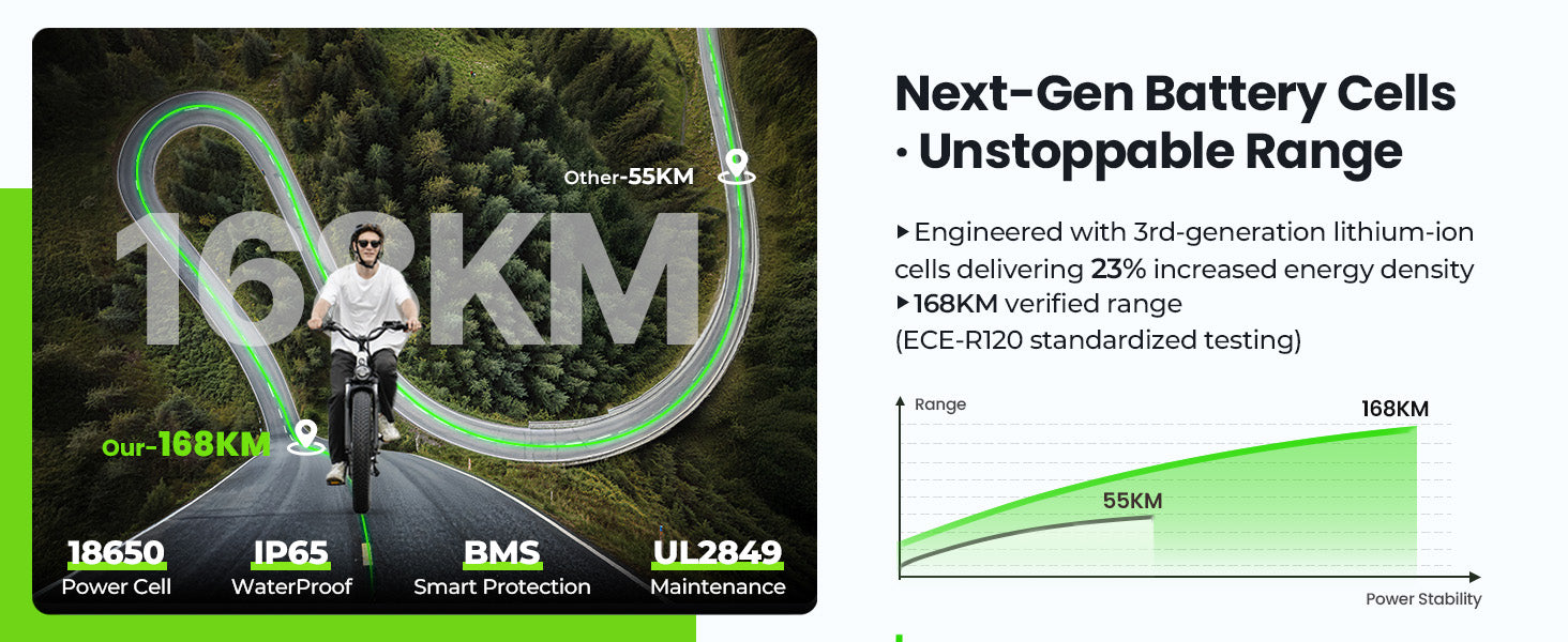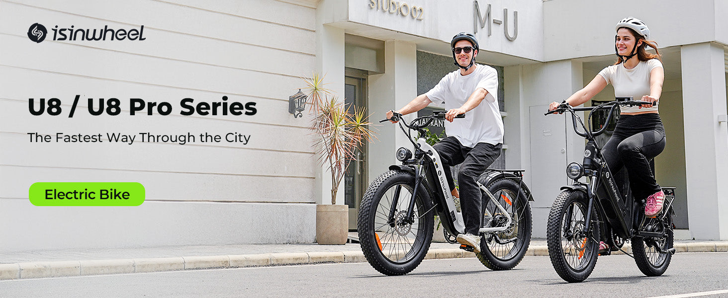 • U8 Plus: 1500W peak power, up to 120 km range, 26×4" fat tires — bigger wheels and stronger motor for off-road versatility.