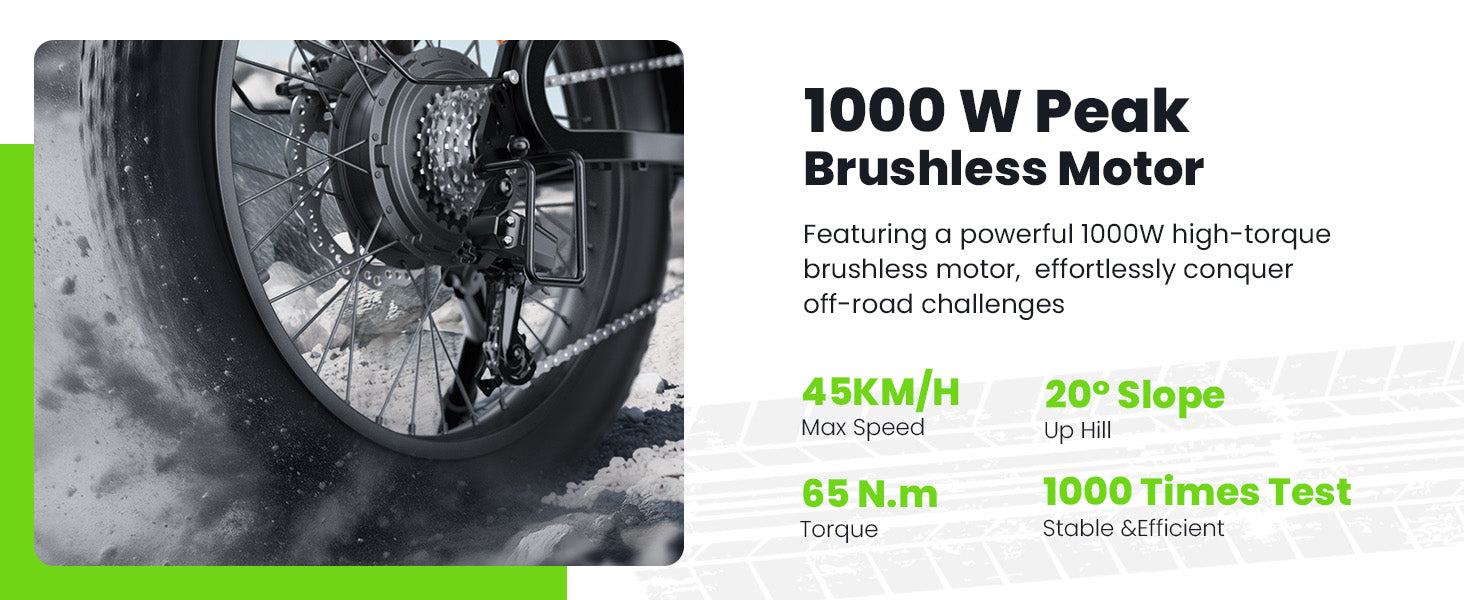 • U8: 1000W peak power, up to 120 km range, 20×3" tires — compact and powerful for daily commutes.