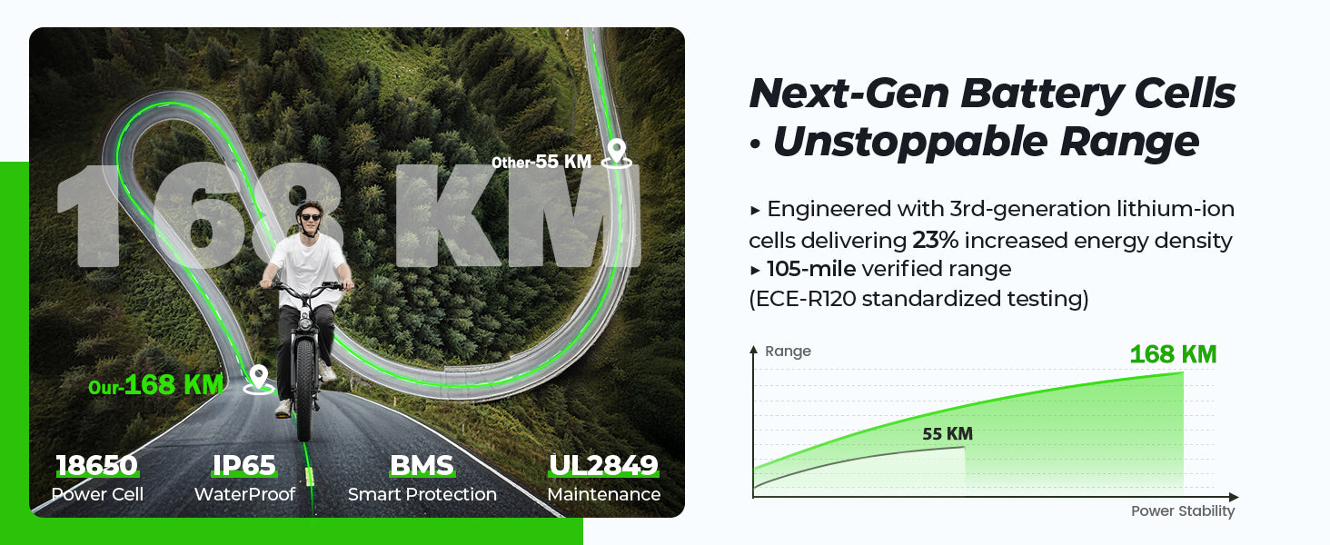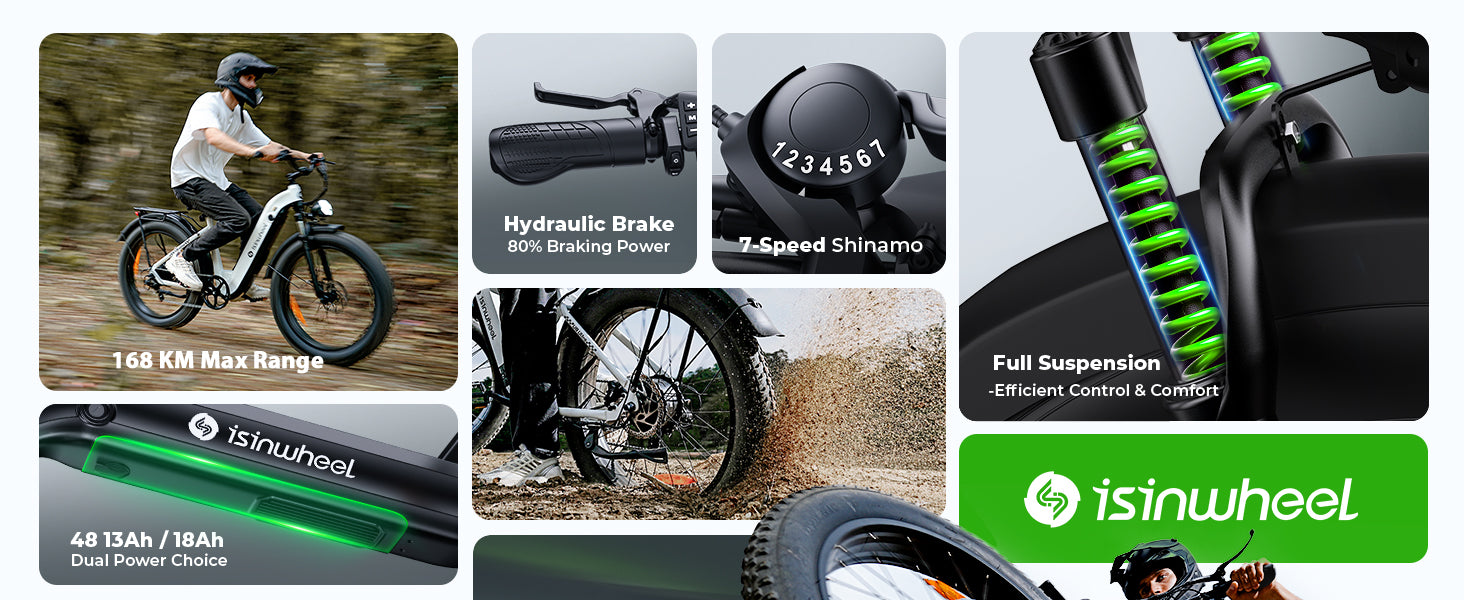 The isinwheel U8 Plus combines premium performance with unbeatable value. Unlike many off-road e-bikes in the same class, it features a full aluminum alloy frame for greater durability and lighter weight. It’s equipped with the latest BMS 2.0 battery management system, ensuring safer and more efficient power delivery. The IP65 waterproof rating allows you to ride confidently in various weather conditions.