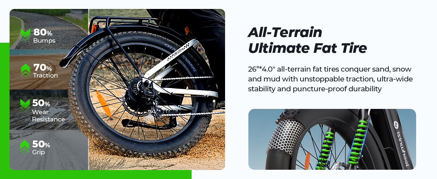 Yes! Especially the U8 Plus and U8 Ultra, which feature 26×4" fat tires and a 1500W motor — perfect for trails, sand, or snow. The smaller 20×3" models (U8 & U8 Pro) perform best on city streets and light gravel paths.